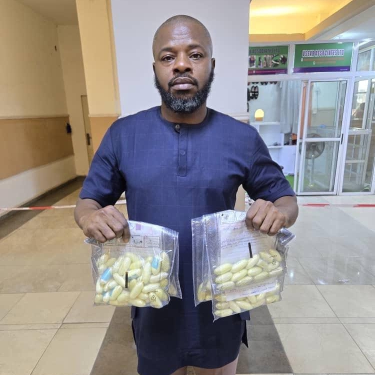 Ejiofor, who runs boutiques in Lagos and Onitsha, Anambra State, was apprehended upon arrival from Bangkok, Thailand, via Ethiopian Airlines flight ET 941 on Wednesday, 8th October 2025, following credible intelligence. A body scan confirmed that he had ingested illicit drugs and concealed others in his private parts.